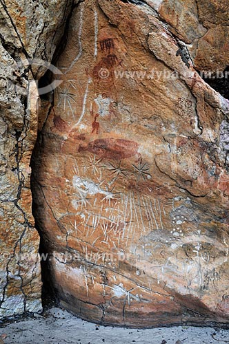 •  Detail of rupestrian painting - Archaeological Site of Toca do Vento - Serra da Capivara National Park  - Sao Raimundo Nonato city - Piaui state (PI) - Brazil