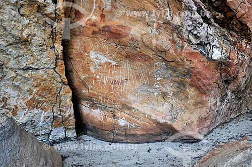 Detail of petroglyph - Templo dos Pilares Archaeological Site - Municipal Natural Park of Templo dos Pilares - Bom Jardim Mountain Range - Alcinopolis city - Mato Grosso do Sul state (MS) - Brazil
