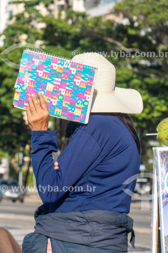• Person protecting face with notebook to avoid being photographed - Rio de Janeiro city - Rio de Janeiro state (RJ) - Brazil