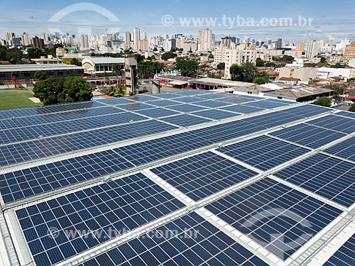 Picture taken with drone of the solar photovoltaics modules - roof of Assai Wholesaler - Goiania city - Goias state (GO) - Brazil