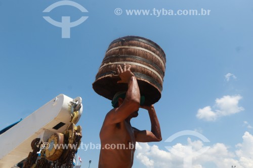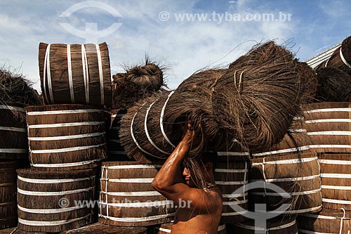 Loading of Piassava (Attalea funifera) - Sao Raimundo Port - Manaus city - Amazonas state (AM) - Brazil
