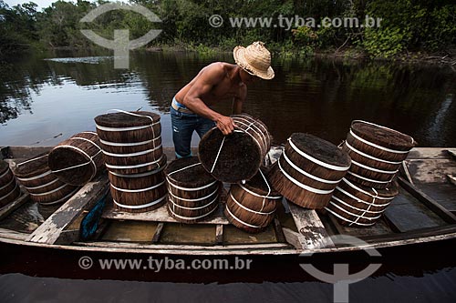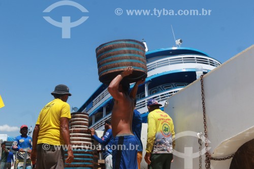 Loading of Piassava (Attalea funifera) - Barcelos city port - Barcelos city - Amazonas state (AM) - Brazil