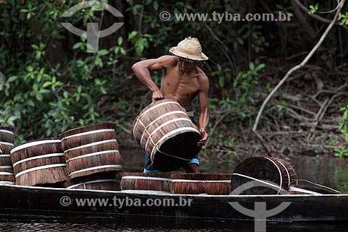 •  Loading of Piassava (Attalea funifera) - Barcelos city port  - Barcelos city - Amazonas state (AM) - Brazil