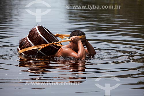 Man carrying piassava (Attalea funifera) - Negro River - Barcelos city - Amazonas state (AM) - Brazil