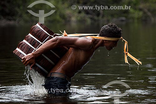 •  Man carrying piassava (Attalea funifera) - Negro River  - Barcelos city - Amazonas state (AM) - Brazil