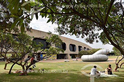 Family picnicking - garden of the Bank of Brazil Cultural Center of Brasilia (2000) - Brasilia city - Distrito Federal (Federal District) (DF) - Brazil