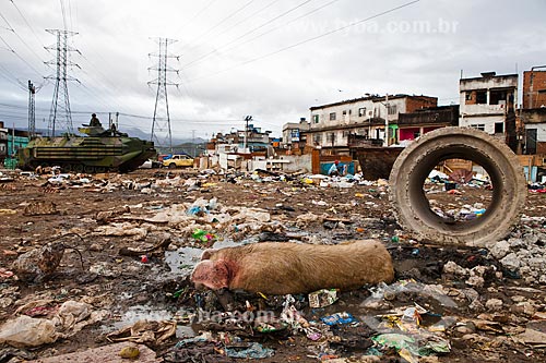 Garbage accumulated near to Manguinhos Station - Saracuruna Branch Line - after occupation in Jacarezinho and Manguinhos slums set for deployment of Pacification Police Unit (UPP) - Rio de Janeiro city - Rio de Janeiro state (RJ) - Brazil