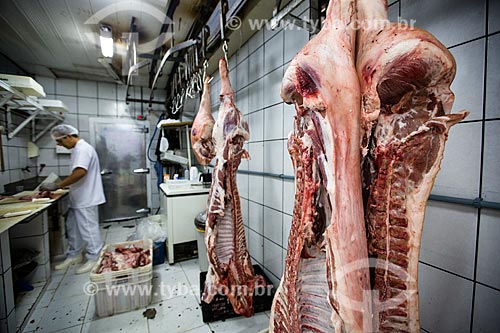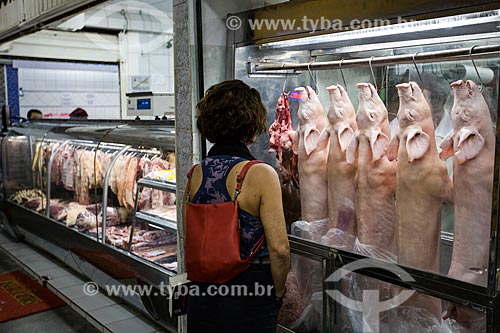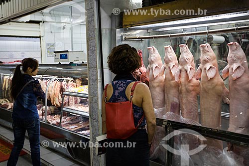 •  Subject: Pigs on exhibition in butcher of Goiania Municipal Market / Place: Goiania city - Goias state (GO) - Brazil / Date: 05/2014