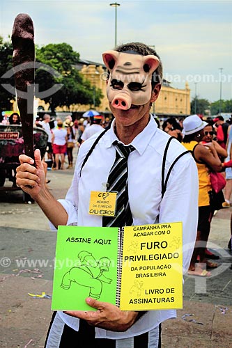 Reveler costumed of pig during the Cordao do Boitata carnival street troup parade - Rio de Janeiro city - Rio de Janeiro state (RJ) - Brazil