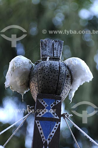 •  Pigeon detail in the central mast of the shamanic patium for the Ture cerimony. The ritual its a way to recieve Karuana, the ancient spirits. - Indigenous of Oiapoque live in the frontier between Brazil and French Guiana  - Rio de Janeiro city - Rio de Janeiro state (RJ) - Brazil