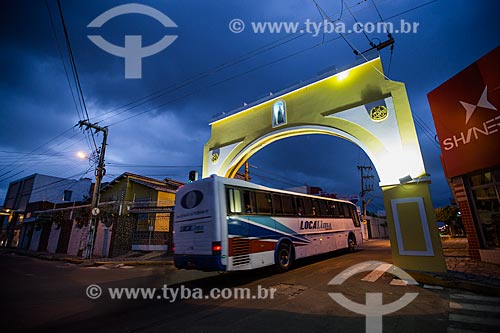 Pilgrims bus passing by Salesian Arc - Juazeiro do Norte city - Ceara state (CE) - Brazil