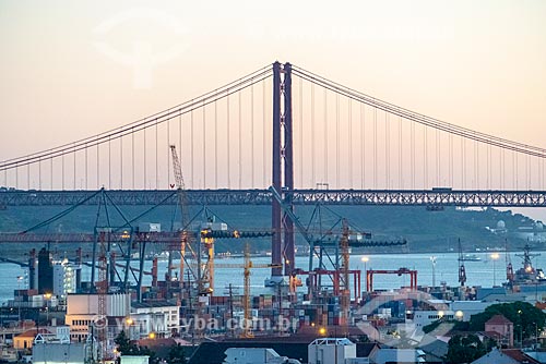 •  April Twenty Five Bridge over of Tejo River during the sunset  - Lisbon - Lisbon district - Portugal