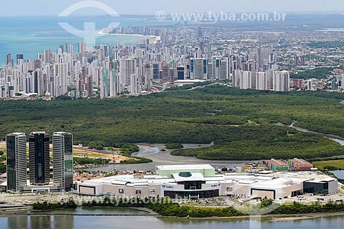 Aerial photo of the Rio Mar Mall with the Manguezais Park (Mangroves Park) - Recife city - Pernambuco state (PE) - Brazil