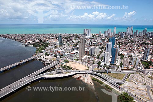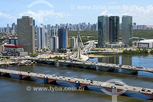 Aerial photo of the Governador Agamenon Magalhaes Bridge with the cable-stayed bridge connecting the Via Mangue to Governador Paulo Guerra Bridge and the Rio Mar Mall in the background - Recife city - Pernambuco state (PE) - Brazil