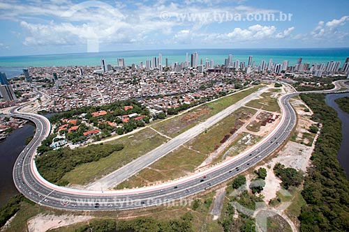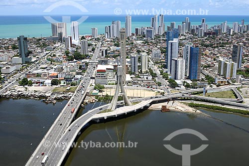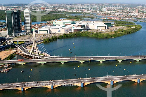 •  Aerial photo of the Governador Agamenon Magalhaes Bridge with the cable-stayed bridge connecting the Via Mangue to Governador Paulo Guerra Bridge and the Rio Mar Mall in the background  - Recife city - Pernambuco state (PE) - Brazil