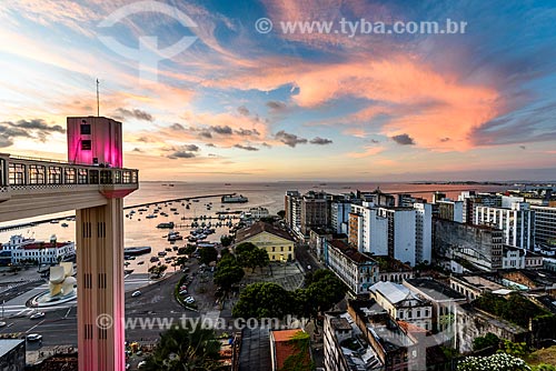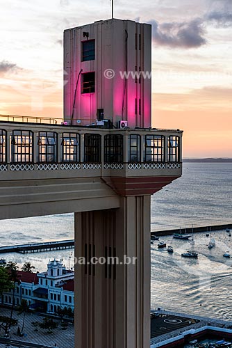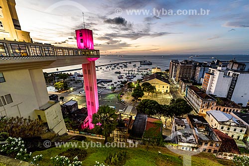 Sunset - Elevador Lacerda (Lacerda Elevator) - 1873 - with special lighting - pink - due to the October Rosa campaign - Salvador city - Bahia state (BA) - Brazil