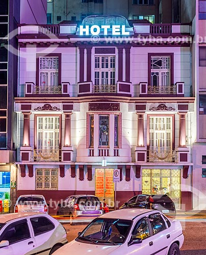 •  Facade of the Hotel Matriz Square (1978) with special lighting - pink - due to the October Rosa Campaign  - Porto Alegre city - Rio Grande do Sul state (RS) - Brazil