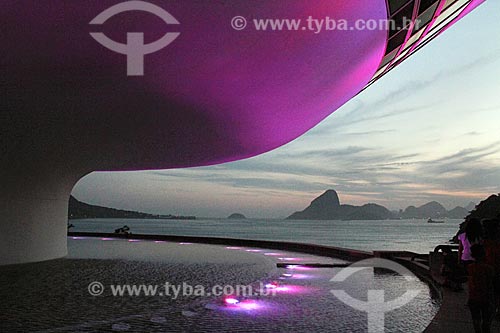 •  Niteroi Contemporary Art Museum (1996) - part of the Caminho Niemeyer (Niemeyer Way) - with special lighting - pink - due to the October Rosa Campaign  - Rio de Janeiro city - Rio de Janeiro state (RJ) - Brazil