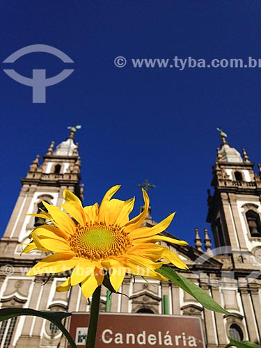 •  Sunflower (Helianthus annuus) - Pio X Square with the Nossa Senhora da Candelaria Church (1609) in the background  - Rio de Janeiro city - Rio de Janeiro state (RJ) - Brazil