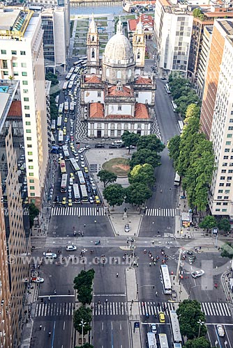 Aerial photo of the crossroad of Presidente Vargas Avenue with Rio Branco Avenue with the Our Lady of Candelaria Church (1609) in the background - Rio de Janeiro city - Rio de Janeiro state (RJ) - Brazil
