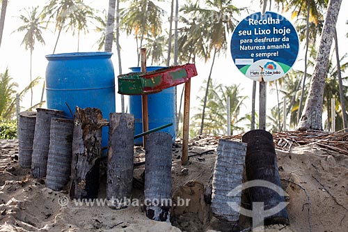 Garbage can - Piscinas Naturais Beach waterfront - Mata de Sao Joao city - Bahia state (BA) - Brazil
