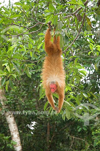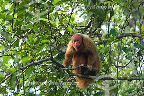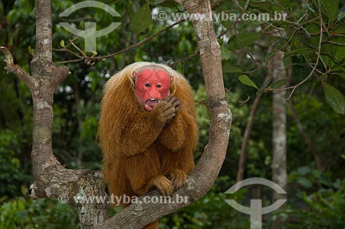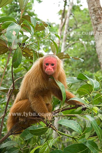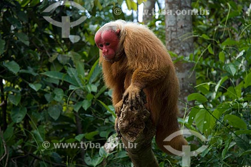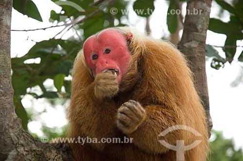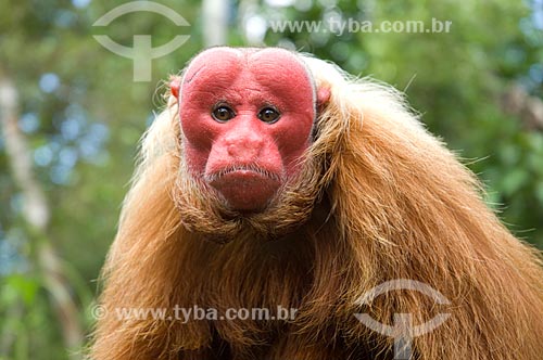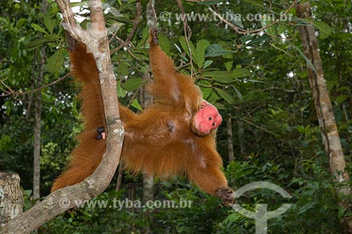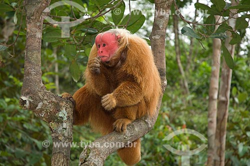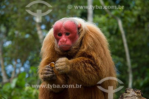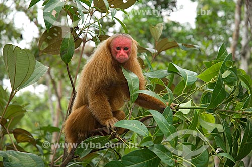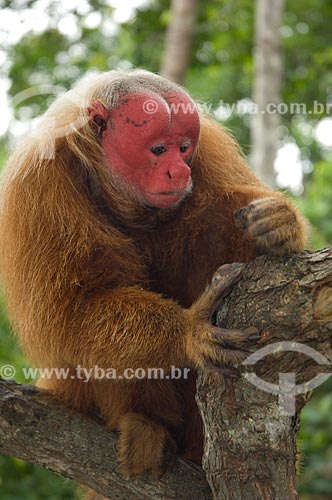 Subject: Male Red Bald-headed Uakari (Cacajao rubicundus) in the Amazon Ecopark Jungle Lodge touristic complex / Place: Manaus - Amazonas state - Brazil / Date: 01/2006