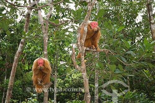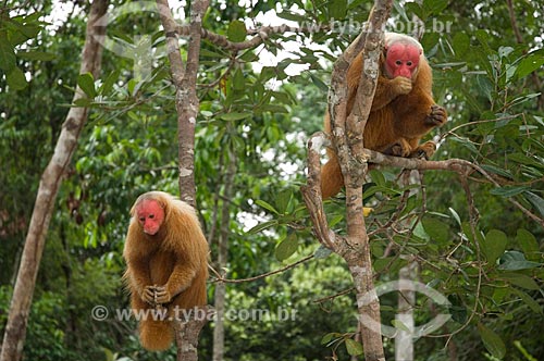 Subject: Couple of Red Bald-headed Uakaris (Cacajao rubicundus) in the Amazon Ecopark Jungle Lodge touristic complex / Place: Manaus - Amazonas state - Brazil / Date: 01/2006