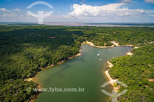 Aerial photo of the Arapiuns River with the Amazonas River in the background - Santarem city - Para state (PA) - Brazil