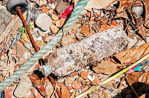 •  Detail of trash - Costazul Beach waterfront  - Rio das Ostras city - Rio de Janeiro state (RJ) - Brazil