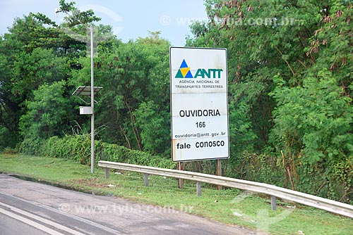National Land Transport Agency (ANTT) plate on Washington Luis Highway (BR-040) - Duque de Caxias city - Rio de Janeiro state (RJ) - Brazil