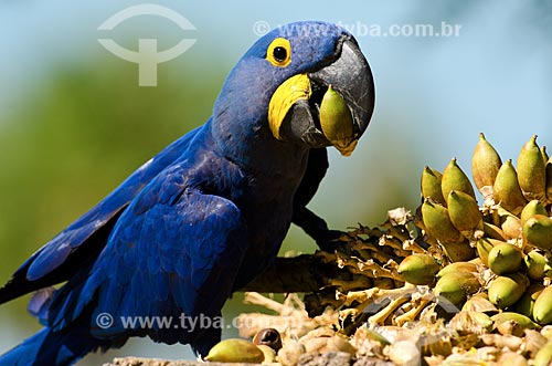 •  Subject: Hyacinth Macaw (Anodorhynchus hyacinthinus - also known as Hyacinthine Macaw - eating platonia insignis in Pantanal Park Road / Place: Corumba city - Mato Grosso do Sul state (MS) - Brazil / Date: 11/2011