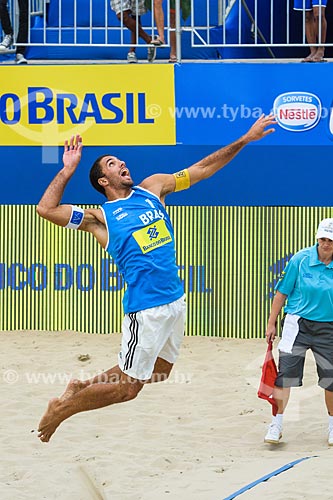 Serve of player Marcus during the Rio Open - Beach Volleyball Circuit stage - test event to Olympic Games - Rio 2016 - Copacabana Beach - Rio de Janeiro city - Rio de Janeiro state (RJ) - Brazil