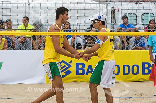 Players Guto and Saymo during the Rio Open - Beach Volleyball Circuit stage - test event to Olympic Games - Rio 2016 - Copacabana Beach - Rio de Janeiro city - Rio de Janeiro state (RJ) - Brazil