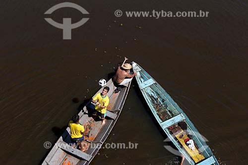 •  Top view of the riverine boys with the Brazilian Team Shirt playing with the Adidas Telstar - official soccer ball of the FIFA World Cup 2018 - Igarape Acu  - Manacapuru city - Amazonas state (AM) - Brazil