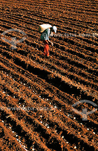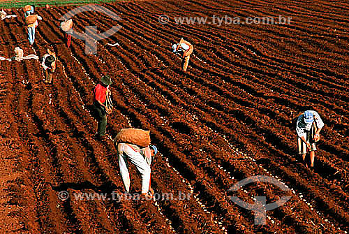 •  Workers manually cultivating potatoes - Porto Ferreira village - Brazil