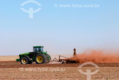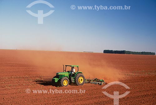 •  Subject: Tractor ploughing a soy field near Emas National Park. / Place: Chapadao do Ceu town - Mato Grosso do Sul state (MS) - Brazil / Date: 26 julho 2006