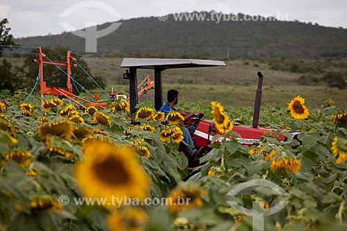 Subject: Sunflower plantation with agriculture tractor / Place: Municipalty of Poco Redondo - Sergipe state - Brazil / Date: 07/2010