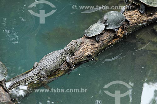 •  Subject: Yacare caiman (caiman crocodilus yacare) and Giant South American river turtle (Podocnemis expansa) at a trunk on Rio de Janeiro Zoo / Place: Rio de Janeiro city - Rio de Janeiro state (RJ) - Brazil / Date: 01/2013