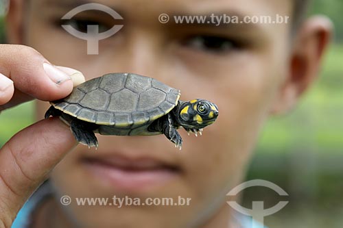 •  Puppy of Giant South American river turtle (Podocnemis expansa) on the banks of Guapore River - Ecovale NGO  - Sao Francisco do Guapore city - Rondonia state (RO) - Brazil