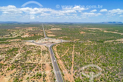 Picture taken with drone of the Federal Highway Police station - roundabout between the BR-116, BR-316 and BR-428 highways - Cabrobo city - Pernambuco state (PE) - Brazil