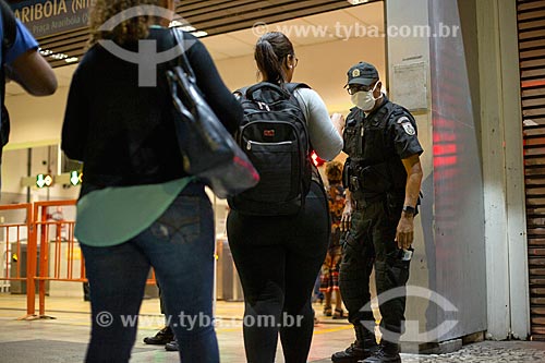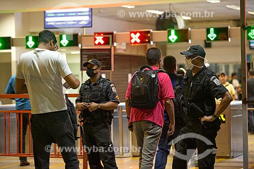 •  Police blockade at Praça XV station causes queues due to checking documents to prove housing in Niteroi city - Coronavirus Crisis  - Rio de Janeiro city - Rio de Janeiro state (RJ) - Brazil