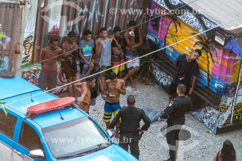 • Military Police action containing a group of black and brown youths in front of Garota de Ipanema Park - Rio de Janeiro city - Rio de Janeiro state (RJ) - Brazil