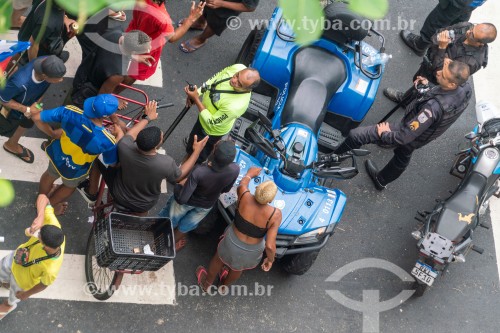 Military Police action containing a group of black and brown youths in front of Garota de Ipanema Park - Rio de Janeiro city - Rio de Janeiro state (RJ) - Brazil