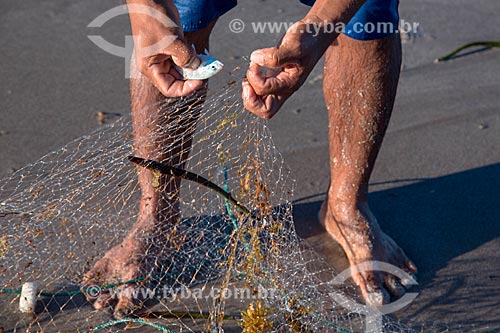 Detail of fisherman - Ponta de Mangue Beach - Maragogi city - Alagoas state (AL) - Brazil