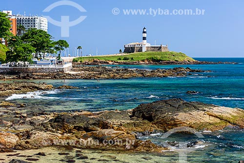 •  View of the Santo Antonio da Barra Fort (1702) from Port of Barra Beach waterfront  - Salvador city - Bahia state (BA) - Brazil