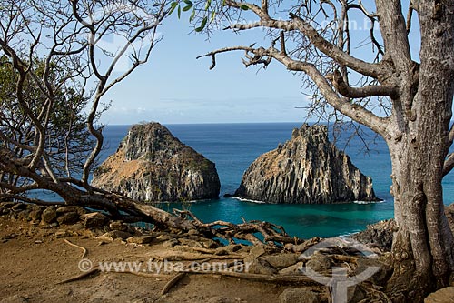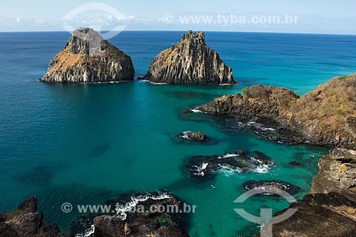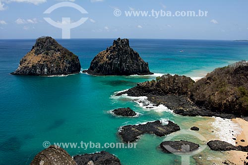 • Porcos Bay with Morro Dois Irmaos (Two Brothers Mountain) in the background - Fernando de Noronha Marine National Park - Fernando de Noronha city - Pernambuco state (PE) - Brazil