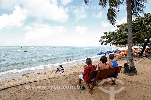Tourists - Portinho Beach waterfront - Mata de Sao Joao city - Bahia state (BA) - Brazil