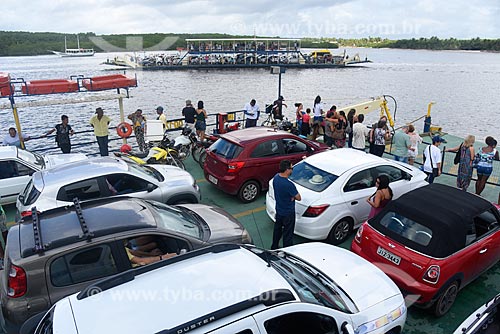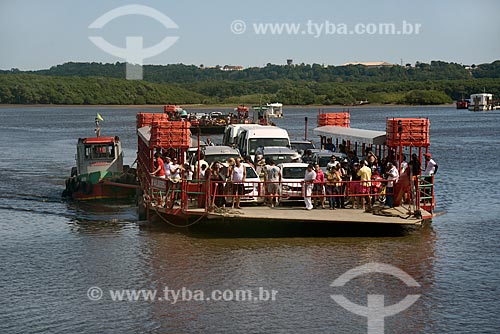Ferries crossing vehicles and passengers on the Buranhem River - Porto Seguro city - Bahia state (BA) - Brazil