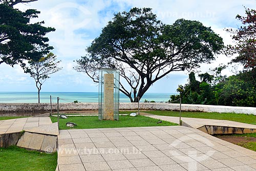 Discovery Landmark - with the cross of the Order of Avis carved in stonework - Pero do Campo Tourinho Square - Porto Seguro city - Bahia state (BA) - Brazil