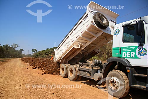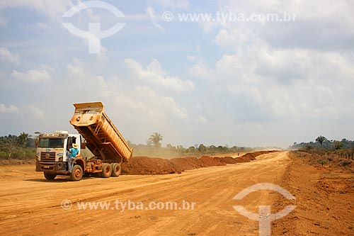Gravel unloading - construction site of the Porto Velho Ring Road - Porto Velho city - Rondonia state (RO) - Brazil